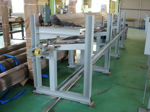 検査機、両端加工機等にコンベア等でパイプを自動供給します |